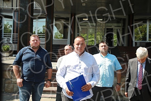 The press conference of the Association of Farmers and Peasants of Serbia was held in front of the Ministry of Agriculture after the meeting with Minister Branislav Nedimovic. Konferencija za medije Udruzenja poljoprivrednika i seljaka Srbije odrzan