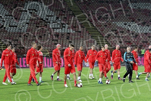 Press Conference and Training of the Austrian national football team (Osterreichische Team) held at the stadium "Rajko Mitic".