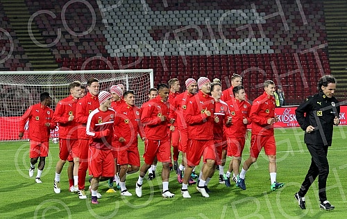 Press Conference and Training of the Austrian national football team (Osterreichische Team) held at the stadium "Rajko Mitic".