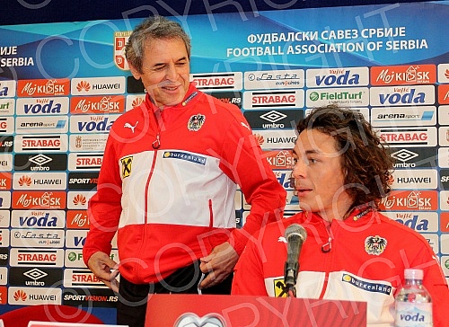 Press Conference and Training of the Austrian national football team (Osterreichische Team) held at the stadium "Rajko Mitic".
