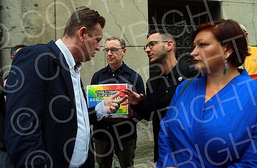 Vanredna konferencija za medije organizatora EuroPrajda 2022 odrzana je ispred zgrade Vlade Srbije