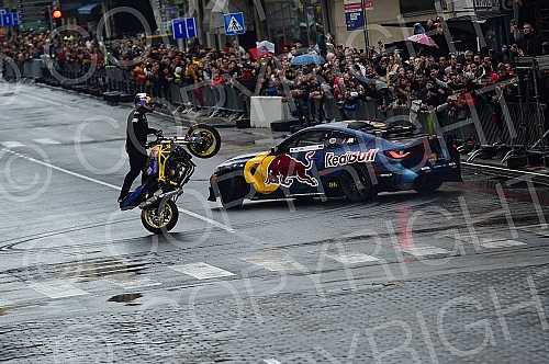 As part of the Redbull Show Run event, David Coulthard in the RB7 F1 car, the Drift Brothers in their BMW Drift cars and Arunas Aras Gibieza on a stunt motorcycle drove through the streets of Belgrade.