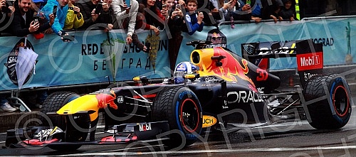 As part of the Redbull Show Run event, David Coulthard in the RB7 F1 car, the Drift Brothers in their BMW Drift cars and Arunas Aras Gibieza on a stunt motorcycle drove through the streets of Belgrade.