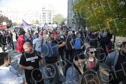 On the plateau in front of the main entrance to JP Posta Serbia, a protest was held by the unions Sloga, Solidarnost and the Independent Union of Postal Workers, who are demanding an increase in wages. Na platou ispred glavnog ulaza u JP Posta Srbij