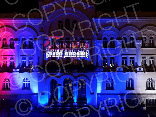 In honor of the volleyball players of Serbia, who defended the title of world champion at the world championship in Apeldoorn, the Netherlands, the City Administration building in Banja Luka was illuminated tonight in the colors of the Serbian flag a