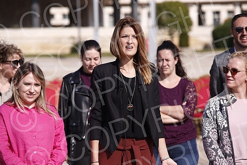 Kreni - promeni initiative organized a performance and a media conference in front of the Palace of Serbia. Inicijativa Kreni-Promeni organizovala je performans i konferenciju za medije ispred Palate Srbija.