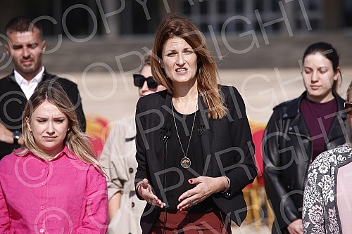 Kreni - promeni initiative organized a performance and a media conference in front of the Palace of Serbia. Inicijativa Kreni-Promeni organizovala je performans i konferenciju za medije ispred Palate Srbija.