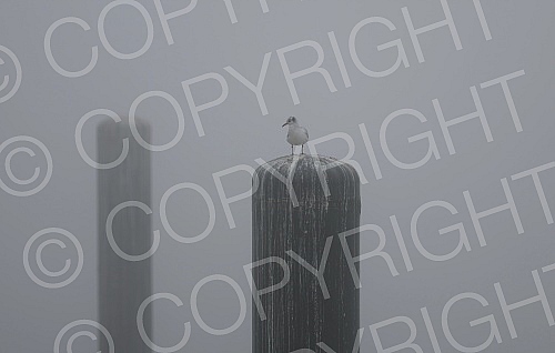 City pollution mixed with morning fog, Belgrade cityscape.