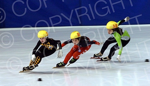 Serbian Championships in speed skating held in Pionir Ice Hall - Detail from speed skating race at the younger categories Open Championship of Serbia in the discipline short path - Short track.