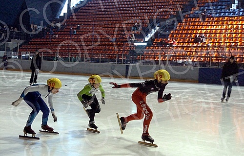 Serbian Championships in speed skating held in Pionir Ice Hall - Detail from speed skating race at the younger categories Open Championship of Serbia in the discipline short path - Short track.