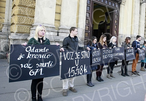 Ispred ulaza u Glavnu zeleznicku stanicu odrzana mirovna akcija "Pamtimo zlocin