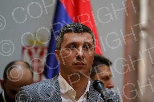 Press conference at the National Assembly of Bosko Obradovic - president of Movement Dveri Serbian and candidate for President of the Republic of Serbia.