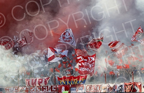 Serbian football Super League match between FK Crvena Zvezda and FK Spartak Subotica played at Rajko Mitic stadium.