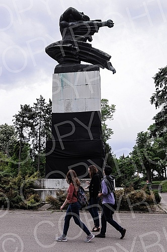 After the court decision in France not to extradite Ramush Haradinaj Serbia, members of the Association of Families of victims from 1998 to 2000 in Kosovo and Metohija are black cloth covered the monument of gratitude to France on Kalemegdan.
