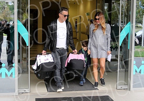Jovana Joksimovic's exit from the maternity ward after the birth of the twin Ana and Srna.