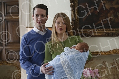 Njegovo Kraljevsko Visocanstvo Princ Filip Karadjordjevic i Danica Karadjordjevic sa sinom Stefanom na Belom dvoru.