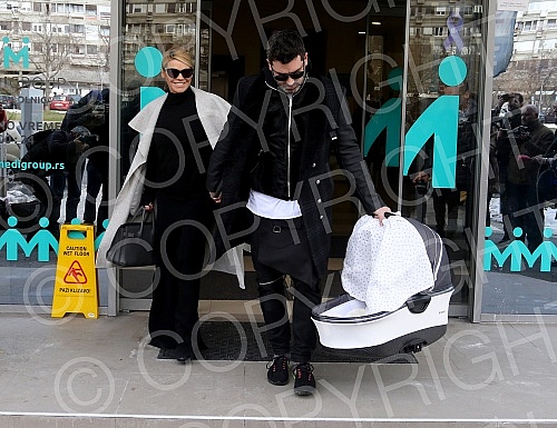 Serbian singer Natasa Bekvalac emerged from the maternity ward with daughter Katja and her husband Luka Lazukic.