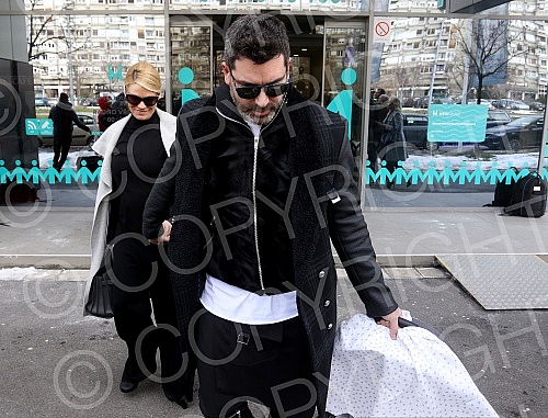 Serbian singer Natasa Bekvalac emerged from the maternity ward with daughter Katja and her husband Luka Lazukic.