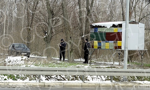 Police block access to Sport Center Kovilovo due to deferred handball match of Serbia vs. Serbia.