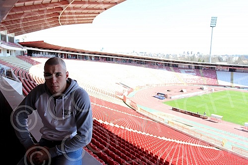 Profesionalni bokser Marko Nikolic na stadionu "Rajko Mitic" (eks Marakana) pred nastup u klubu Teatro 4. marta 2015.