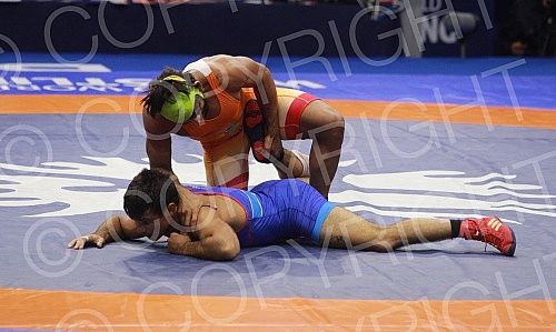 Borba za bronzanu medalju u kategoriji do 65 kg slobodnim stilom, Bajrang Bajrang (Indija) vs Sebastian C Rivera (Puerto Rico).