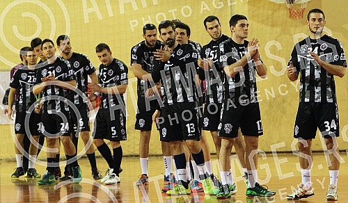 - Description: 06, February, 2016, Belgrade - Turnir cetiri rukometna kluba povodom "60 godina ligaskog takmicenja" odrzan u hali SRC Banjica (Partizan - Spartak Vojput i Vojvodina - Metaloplastika). Ekipa RK Partizan. Photo: V. M. rukomet, rk partizan, rk spartak, rk metaloplastika, rk vojvodina, handball, src banjica, hala banjica, 60 godina ligaskog takmicenja, 60 godina takmicenja