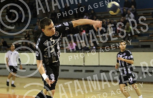 - Description: 06, February, 2016, Belgrade - Turnir cetiri rukometna kluba povodom "60 godina ligaskog takmicenja" odrzan u hali SRC Banjica (Partizan - Spartak Vojput i Vojvodina - Metaloplastika). Nemanja Zivkovic, #5 (RK Partizan). Photo: V. M. rukomet, rk partizan, rk spartak, rk metaloplastika, rk vojvodina, handball, src banjica, hala banjica, 60 godina ligaskog takmicenja, 60 godina takmicenja