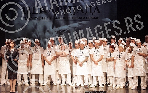 - Description: 20, April, 2016, Belgrade - "Pekarijada 2016" , a solemn declaration of the best bakers of Serbia in five categories - best in preparing traditional enriched bread is Lazar Milanov , in preparing of burek (the pasty) Marjan Jerinic , flat bread Srdjan Stojanovic and buns with jam Marko Zivkovic. The title of "best young bakers took Nenad Radovanovic. Photo: A. K./ATAImages 20, april, 2016, Beograd - Pekarijada 2016, svecano proglasenje najboljih pekara Srbije u pet kategorija najbolji u pripremanju tradicionalnog obogacenog hleba je Lazar Milanov, u pripremanju bureka je Marjan Jerinic, somuna Srdjan Stojanovic, a buhtle sa dzemom Marko Zivkovic. Titulu najboljeg mladog pekara poneo je Nenad Radovanovic. Foto: A. K./ATAImages