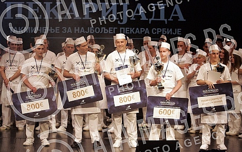 - Description: 20, April, 2016, Belgrade - "Pekarijada 2016" , a solemn declaration of the best bakers of Serbia in five categories - best in preparing traditional enriched bread is Lazar Milanov , in preparing of burek (the pasty) Marjan Jerinic , flat bread Srdjan Stojanovic and buns with jam Marko Zivkovic. The title of "best young bakers took Nenad Radovanovic. Photo: A. K./ATAImages 20, april, 2016, Beograd - Pekarijada 2016, svecano proglasenje najboljih pekara Srbije u pet kategorija najbolji u pripremanju tradicionalnog obogacenog hleba je Lazar Milanov, u pripremanju bureka je Marjan Jerinic, somuna Srdjan Stojanovic, a buhtle sa dzemom Marko Zivkovic. Titulu najboljeg mladog pekara poneo je Nenad Radovanovic. Foto: A. K./ATAImages